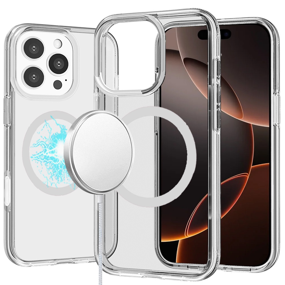 For iPhone 16 Pro 6.3 inch Sturdy Ultra [Magnetic Circle] Thick 3mm Transparent Hybrid - Clear